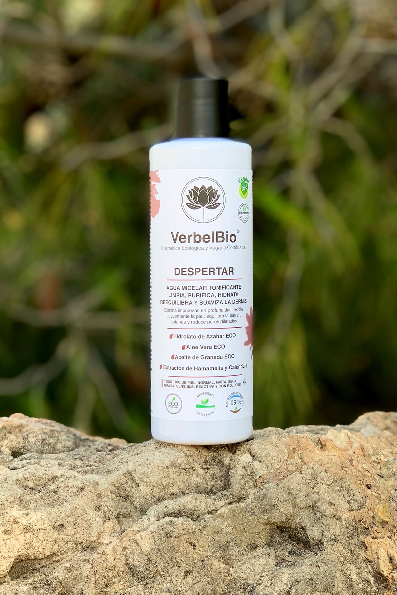 Agua micelar multifuncional tonificante y tratante con doble función, limpia la piel en profundidad eliminando cualquier resto de maquillaje, al tiempo que purifica, tonifica, desintoxica, refresca y calma la dermis, preparándola para recibir cualquier tratamiento posterior. Está elaborada a partir de hidrolato de Azahar ECO y Aloe Vera BIO que la hidratan, suavizan y protegen. Sus propiedades regenerantes hacen que sea ideal para cualquier tipo de rostro tanto para los que presentan sequedad, exceso de grasa, poros dilatados como aquellos proclives al enrojecimiento o a la sensibilidad. Favorece, además, la creación de nuevas células y ayuda a activar la síntesis de colágeno y de la elastina. El aceite orgánico de Granada no solo es un potente antioxidante, sino que también resulta excepcional en la lucha contra el envejecimiento de la piel, así como en la recuperación de tejidos y contribuye a mejorar el tono de la dermis. Sus propiedades hidratantes contribuyen a revitalizar y rejuvenecer la piel, aportando salud, brillo y lozanía. Además, contiene ácidos grasos y triglicéridos compatibles con el sebo natural de la epidermis, reequilibrando y recuperando la barrera cutánea. El extracto de Caléndula, protege, calma y elimina el estrés oxidativo y el extracto de Hamamelis posee propiedades purificadoras, regulando así la función sebácea. Todo ello, hace que se trate de una loción tónica ideal como complemento a la rutina de higiene facial diaria.